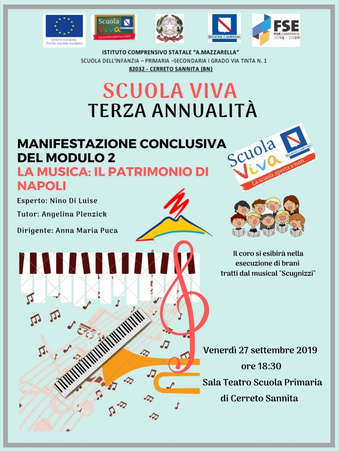 26/09/2019 - Alleghiamo la locandina della manifestazione conclusiva del modulo 2 "La musica il patrimonio di Napoli"
